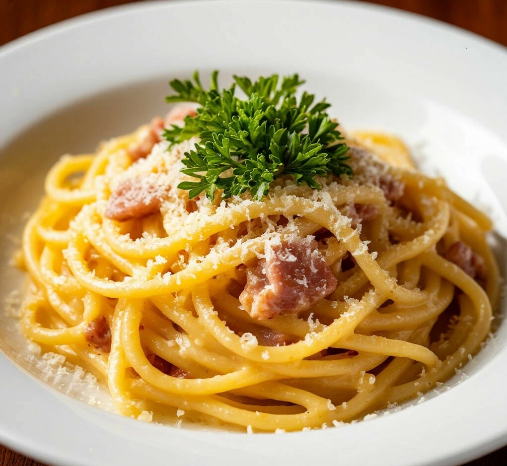 Ингредиенты: спагетти — 200 г, бекон или гуанчиале — 100 г, яйца — 2 шт., тертый пармезан — 50 г, соль, черный перец.