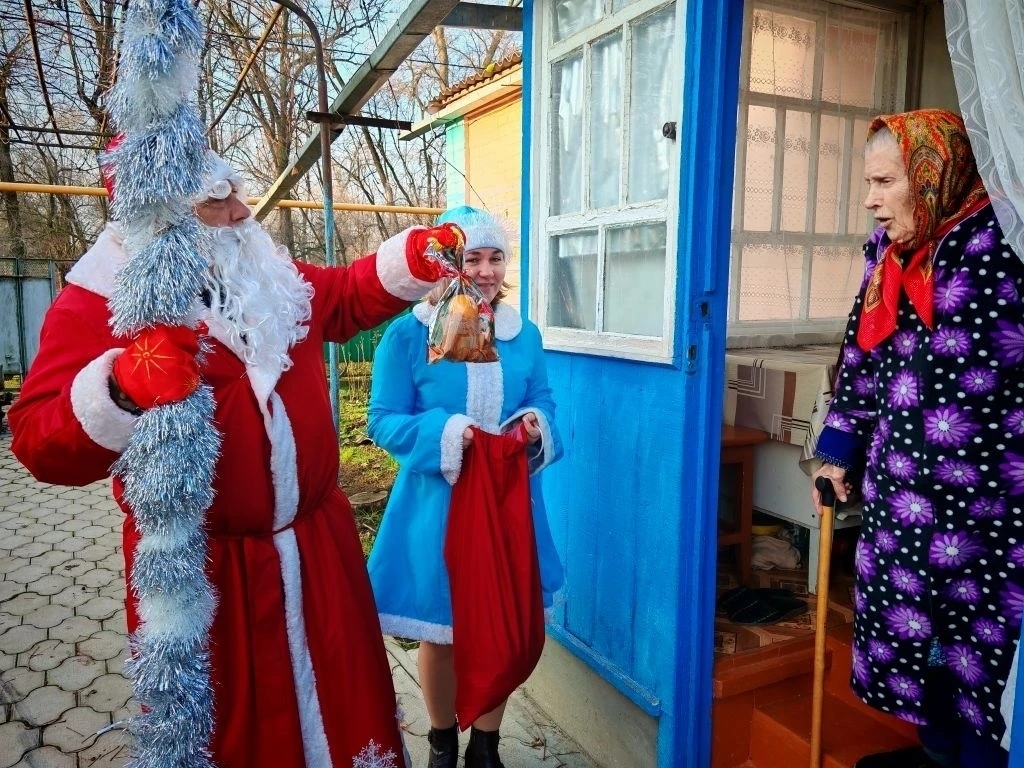 В рамках акции Дед Мороз и Снегурочка посетили на дому граждан старше 80 лет, находящихся на обслуживании.