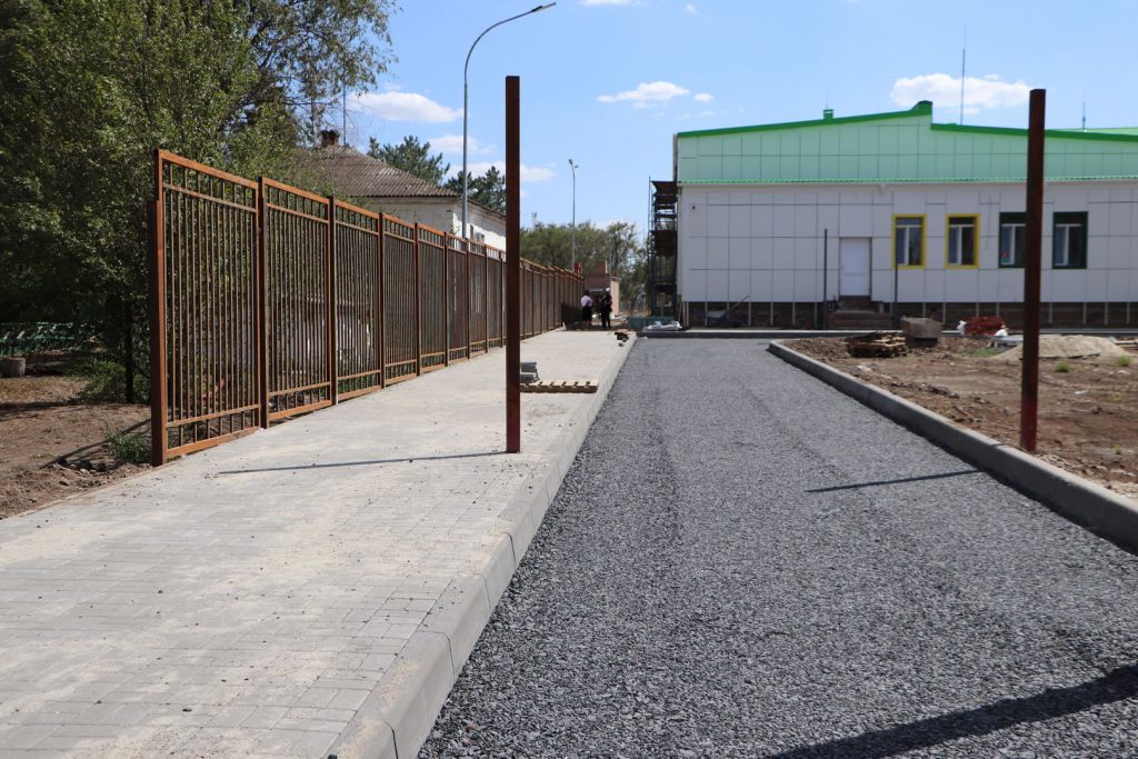 На сегодняшний день завершается штукатурка и покраска стен на втором этаже. В холлах уложена плитка, для классных комнат завезен линолеум. Начат монтаж подвесных потолков – материалы закуплены в полном объеме. Установлены металлопластиковые двери на всех этажах. Продолжаются плиточные работы в пищеблоке, душевых и туалетах. Ведутся фасадные работы и благоустройство территории: подготовка основания под спортивную площадку, установка ограждения.