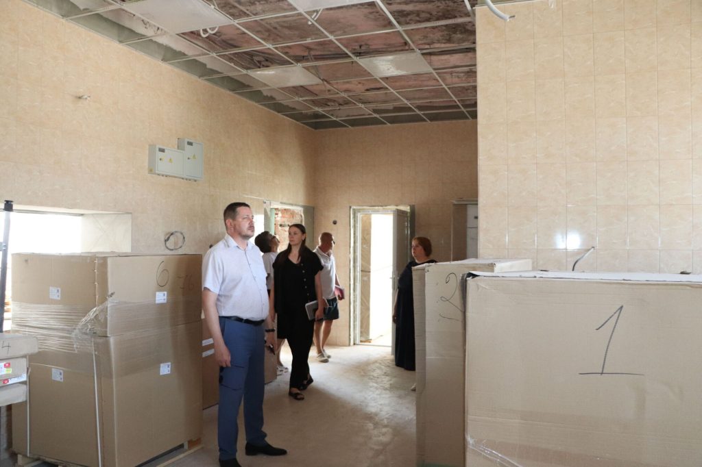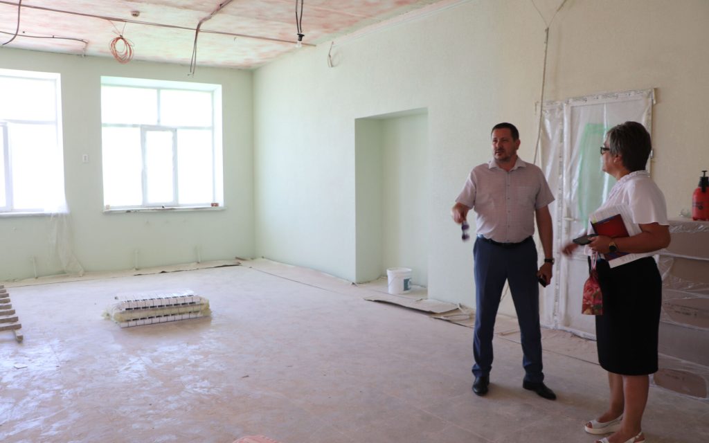 Исполняющий обязанности главы администрации района Алексей Кравцов посетил Поливянскую школу №29 им. В.С. Погорельцева, где проверил ход капитального ремонта, завершено уже 75% работ.