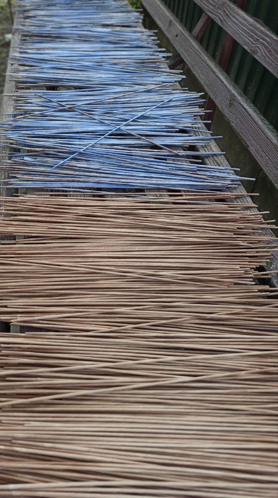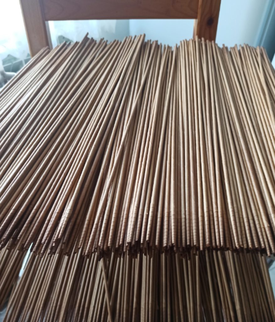Далее трубочки окрашивают морилкой на водной основе в желаемый цвет, пропитывают, сушат, а перед плетением снова увлажняют, чтобы лоза была послушной, а потом уже готовую работу покрывают лаком на водной основе.