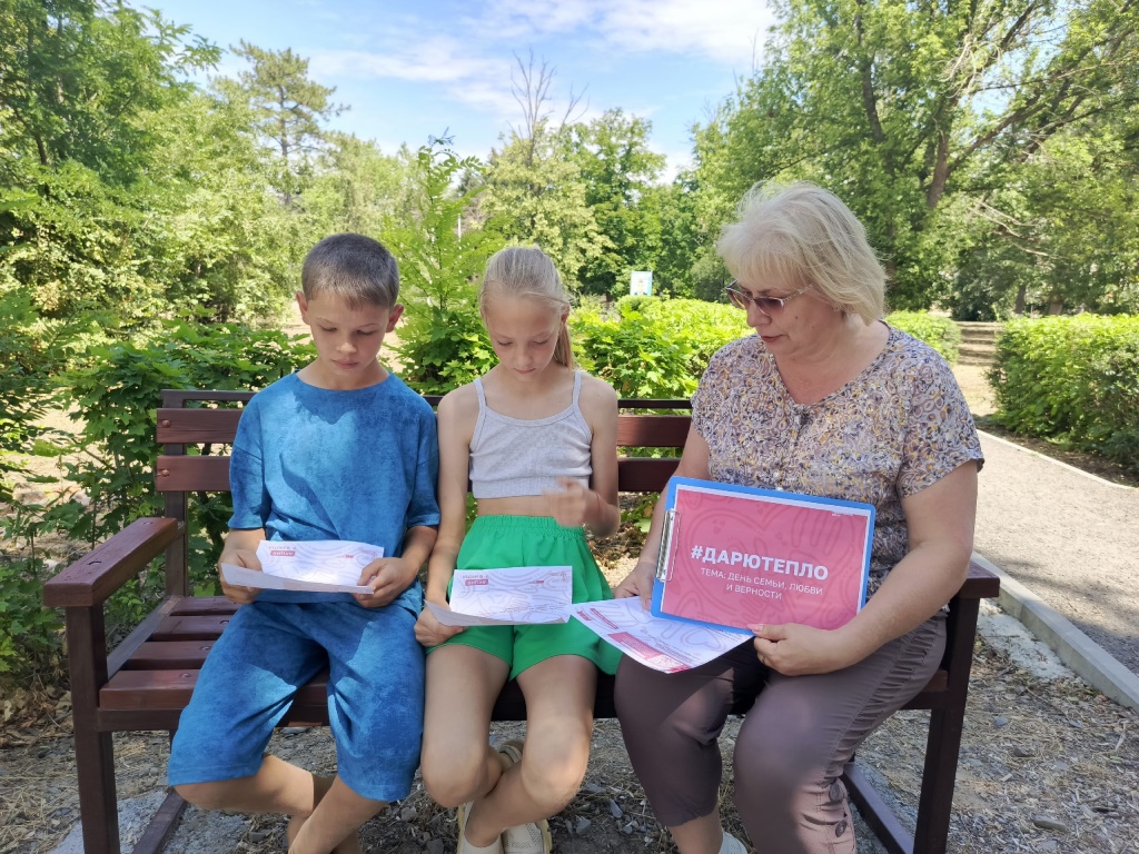 Библиотекари МБУК Песчанокопского района «МЦБ» приняли участие во Всероссийской уличной акции «Дарю Тепло», которая проходила с 7 по 9 июля 2025 года и была приурочена к Дню семьи, любви и верности.