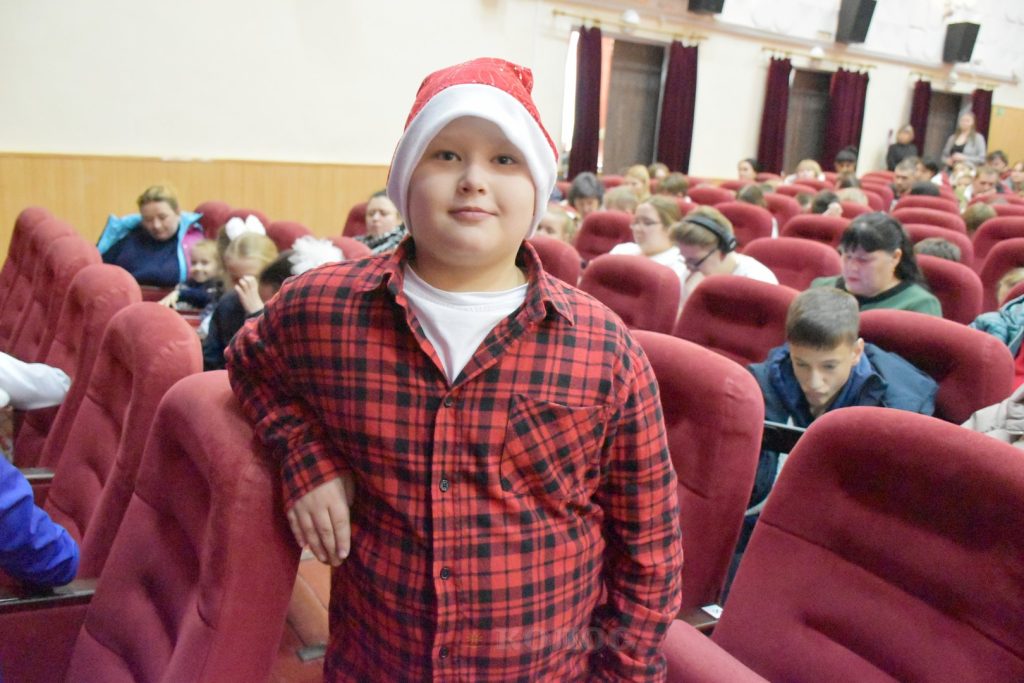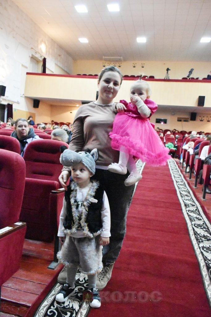 Праздничная атмосфера царила с самого порога: в фойе РДК юных гостей уже ждали Дед Мороз и Снегурочка. Волшебные персонажи тепло приветствовали каждого ребёнка и вручали каждому сладкий подарок.