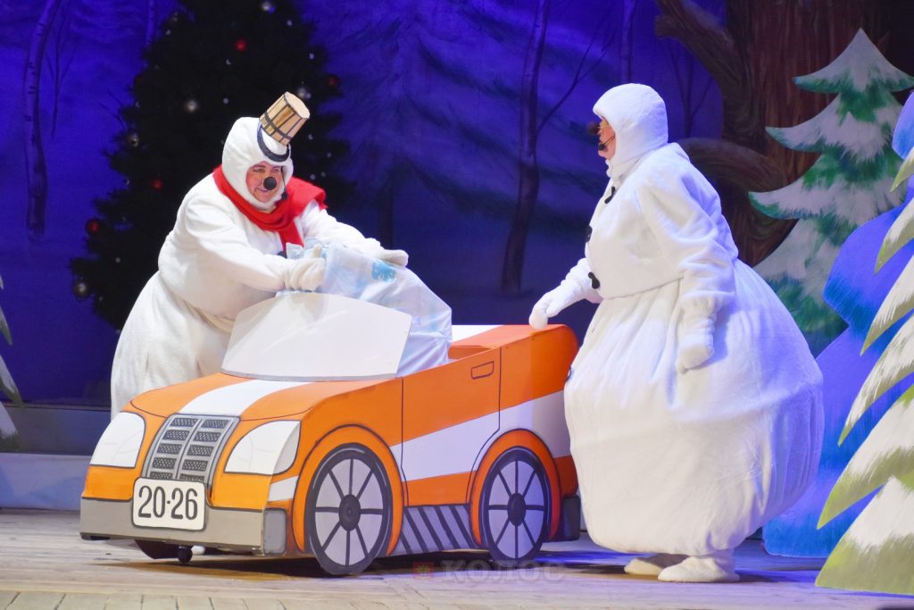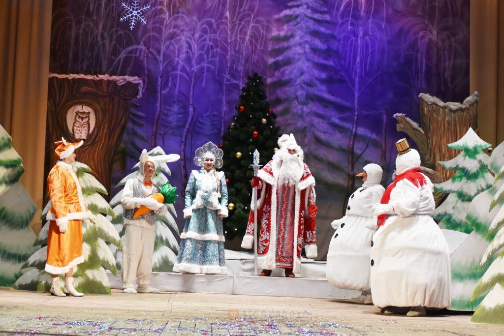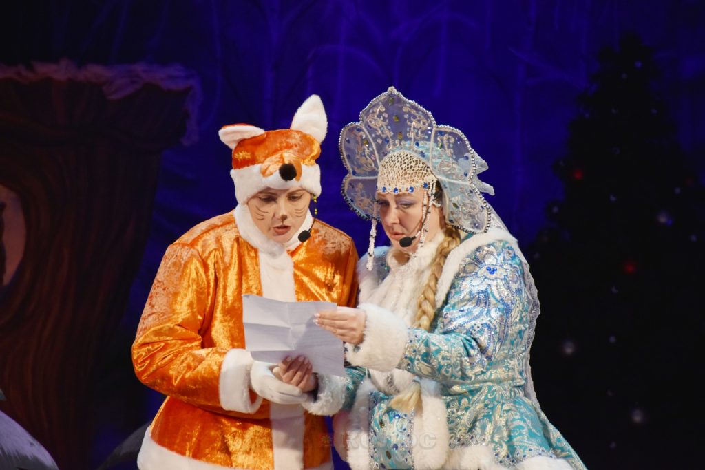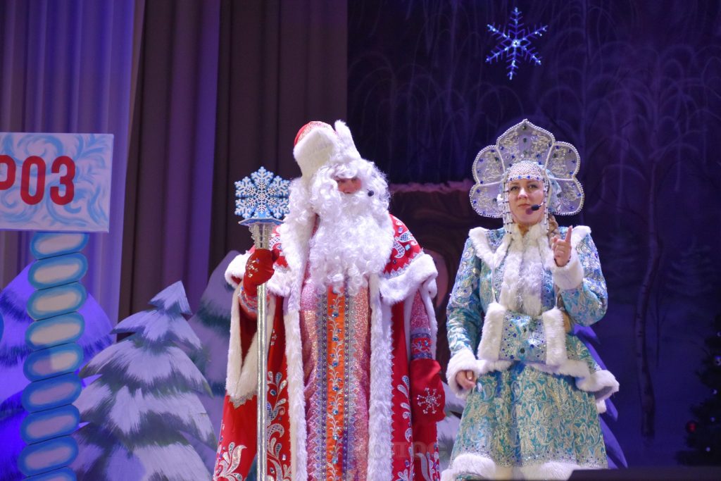 Творческий коллектив районного дворца культуры подготовил для ребят волшебное представление. Яркие костюмы и декорации помогли ребятам окунуться в мир сказок и новогодних чудес! Дети принимали активное участие в представлении и помогли главным героям – Деду Морозу и Снегурочке разгадать загадку и спасти новогодний праздник!