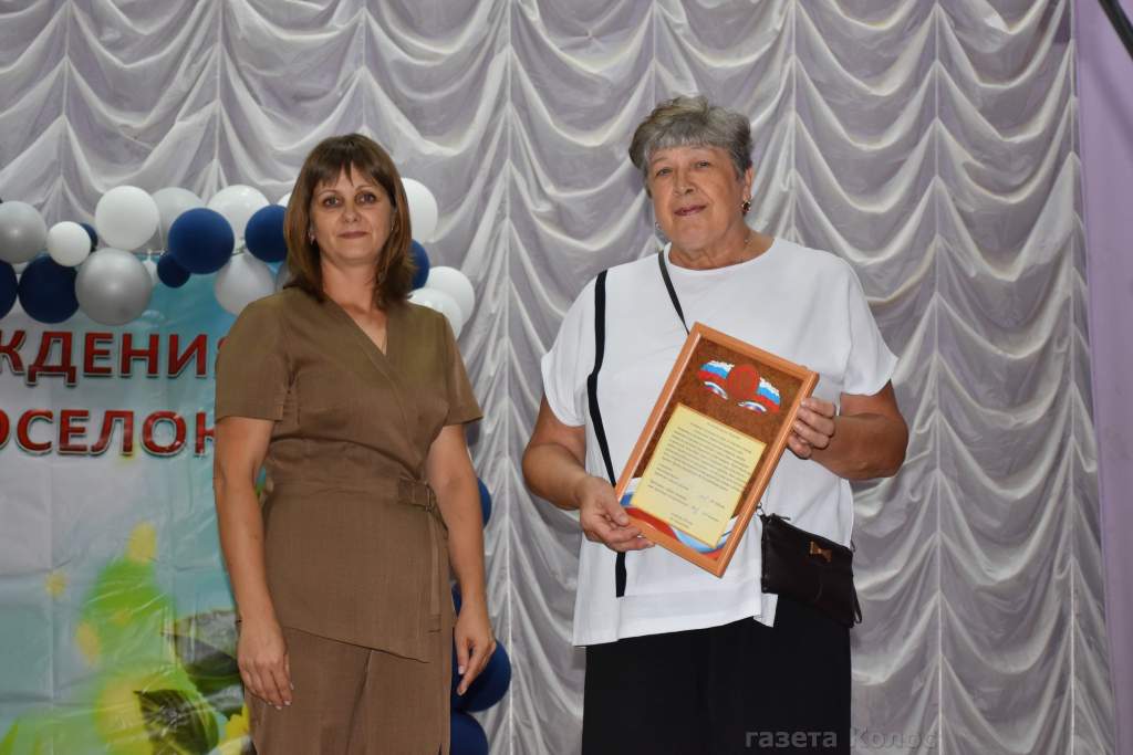 Собравшихся в зале жителей поприветствовала глава администрации Зареченского сельского поселения Любовь Владимировна Забелина. Глава от души поздравила односельчан и следуя многолетней традиции, вручила каравай из муки нового урожая представителям старшего поколения — Председателю совета ветеранов поселения Раисе Павловне Немыкиной. А также отметила благодарностью волонтерскую группу «Единство», занимающуюся плетением сетей. Награду получила руководитель волонтерского движения Галина Константиновна Гревцева.