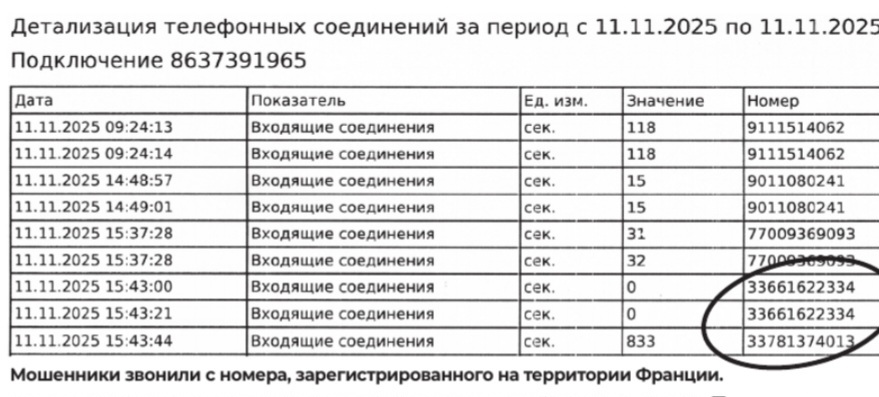 На следующий день я заказала детализацию звонков через личный кабинет. Оказалось, что сердобольная «сотрудница Ростелекома» звонила мне с номера, зарегистрированного на территории Франции.