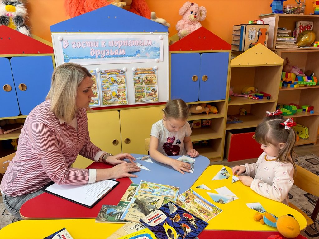Затем юные художники приступили к творческой мастерской — они с большим интересом собирали пазлы с красочными изображениями птиц, стараясь точно совместить фрагменты и передать все оттенки оперения.