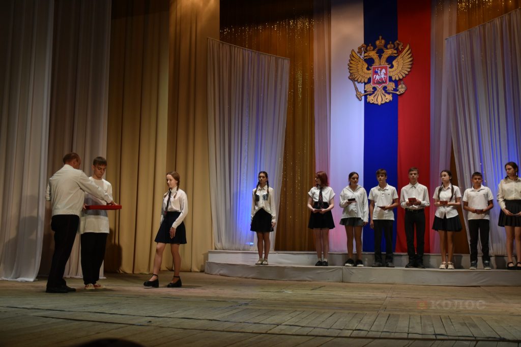 В рамках мероприятия юным гражданам села Песчанокопского, достигшим 14-летия, отличившимся в учебе и общественной деятельности, были торжественно вручены их первые главные в жизни документы — паспорта. Передал их ребятам начальник миграционного пункта Отдела МВД России по Песчанокопскому району Андрей Иванович Семендяев. С приветственным словом к ребятам России обратилась почетный житель Песчанокопского Татьяна Петровна Корнеева, она пожелала ребятам быть достойными гражданами своей страны, хорошо учиться, быть активными и неравнодушными и своими делами прославлять малую родину.