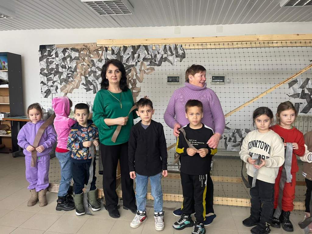 Ребята и воспитатели пробовали себя в плетении масксети.