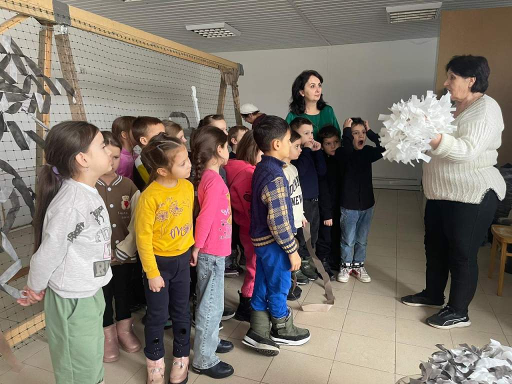 Роман Кобылко, который с единомышленниками занимается изготовлением свечей для блиндажей и печей, рассказал маленьким экскурсантам, как делают свечи и как их применяют бойцы. Юные гости пришли не с пустыми руками, они принесли свои рисунки, которыми будут обернуты свечи.