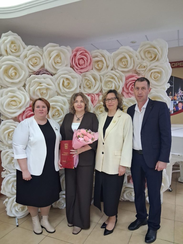 В завершение заседания прошла церемония награждения работников культуры. За многолетний добросовестный труд, высокий профессионализм и преданность профессии Благодарственным письмом Губернатора Ростовской области отмечена директор Песчанокопской детской школы искусств Александра Викторовна Абакумова.