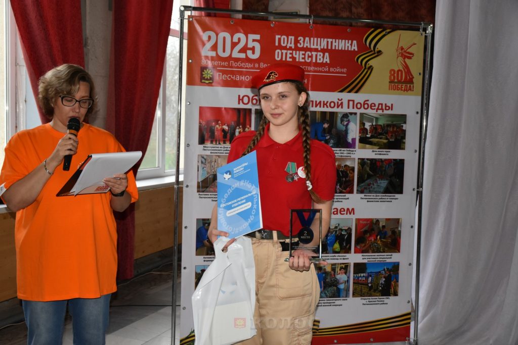Благодарности и награды получили организаторы и эксперты площадок. Активисты «Движения Первых» (руководитель местного отделения И. Бронникова) и «Волонтеры Победы» (руководитель местного отделения А. Завгородняя) вручили заслуженные награды своим лидерам. Среди награжденных — Ю. Толстая, С. Мироненко, А. Сапашева, А. Мартиросян, а также лучший юный доброволец В. Великоднева и многие другие.