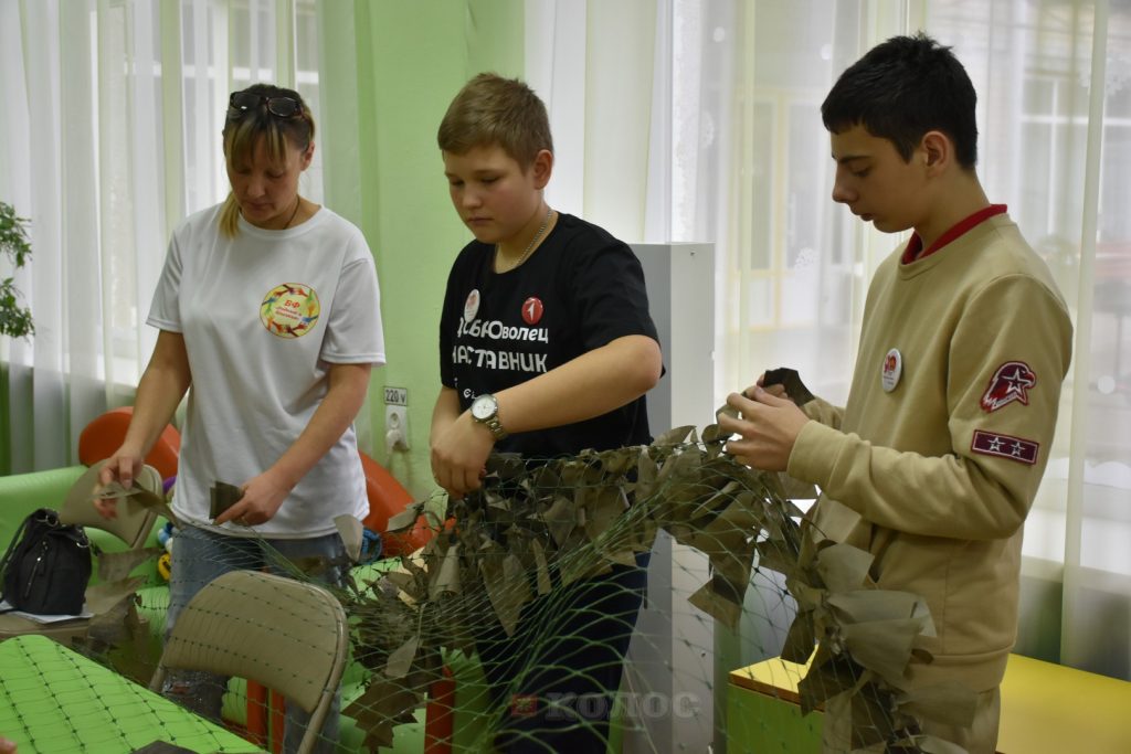 Площадка «Добротворец», расположившаяся на территории детской библиотеки, стала местом настоящего созидания. Участников встречали библиотекарь межпоселенческой центральной библиотеки А. Сапашева и заведующая отделом обслуживания А. Шереметьева. Под руководством руководителя волонтерской группы «Родные и близкие» К. Ильиной, волонтера В. Золотаревой, председателя благотворительного фонда «Родные и близкие» Н. Ахневской и активного волонтера, многодетной мамы А. Семеновой ребята создали значимую партию помощи: было изготовлено 350 наборов сухого армейского душа, 11 подушек-«косточек» для госпиталя, 6 браслетов выживания, 246 заготовок для маскировочных костюмов «Кикимора» и маскировочная сеть размером 2х3 метра.