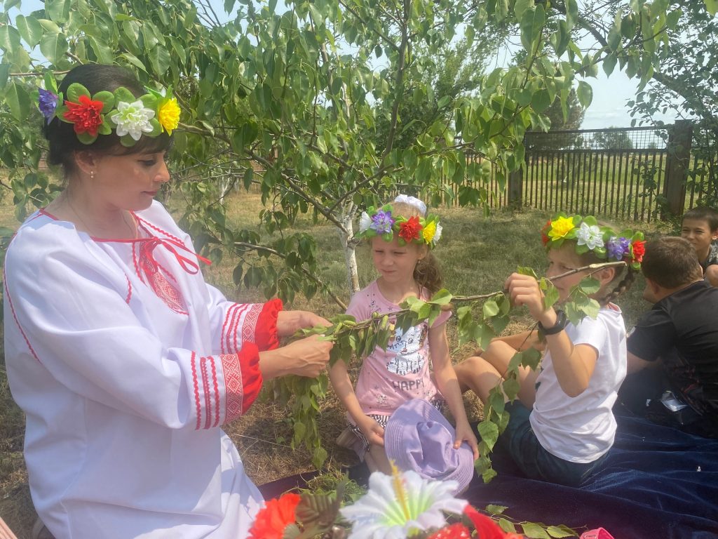 Особое место в праздновании занимала берёза – главный символ Троицы. Её ветви считались оберегом от злых сил, а девушки плели венки, гадая на судьбу. Также существовал обычай «завивания берёзки» – молодые люди украшали дерево лентами, водили вокруг него хороводы и пели обрядовые песни. Именно около красивой березы и состоялось мероприятие.