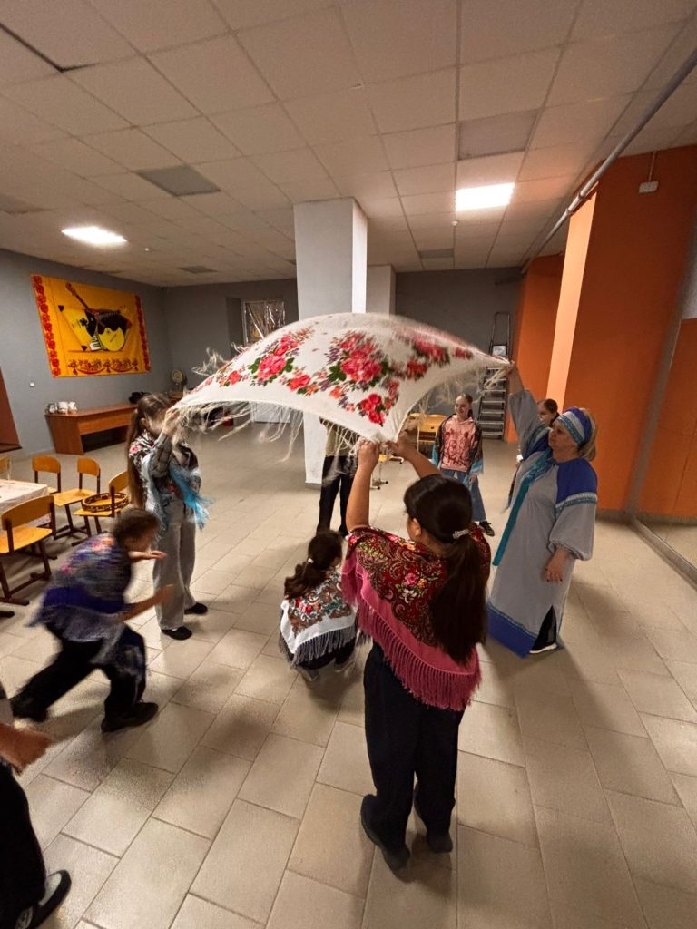 Участники вечера окунулись в атмосферу народного гуляния: вспоминали пословицы, поговорки и загадки, слушали задорные частушки. Особый колорит празднику придали традиционные игры: «Платочек», «Ручеёк», «Птички улетели», «Мотальщицы» и «Заплети косу». Кульминацией вечера стал общий хоровод.
