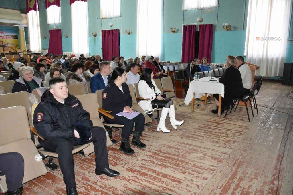 Исполняющий обязанности участкового уполномоченного выступил Е.Ю. Алисов рассказал собравшимся об оперативной обстановке в селе Богородицком. За минувший период зафиксировано два преступления и составлено 26 административных протоколов. Полицейский обратил внимание жителей на участившиеся случаи телефонного мошенничества, в том числе и на территории нашего района и дал советы, как избежать неприятностей.