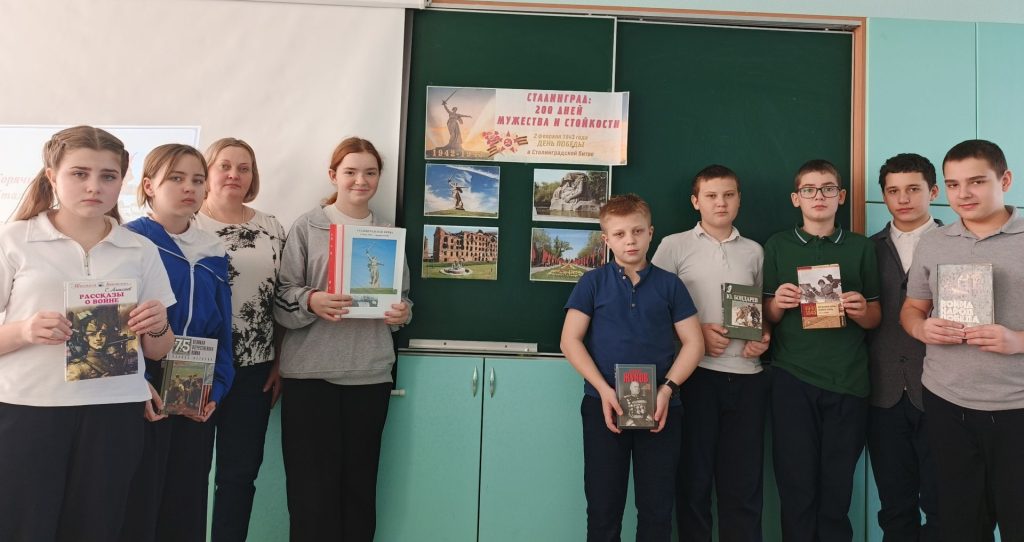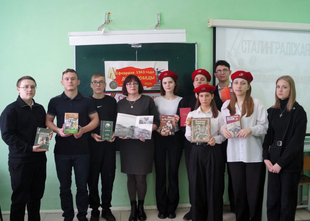 Присутствующим были представлены книги о Сталинградской битве из фонда библиотеки, также ребята познакомились с альбомом документальных военных фотографий, сделанных в 1942-1943 г. в Сталинграде. День разгрома советскими войсками немецко-фашистских войск в Сталинградской битве навечно вписан в героическую летопись страны.