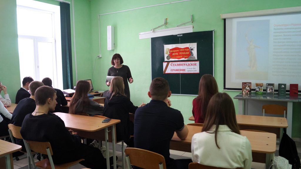 Говорили о Героях Сталинграда: о Я. Ф. Павлове, о В. Г. Зайцеве, о М. А. Паникахе. В ходе мероприятия ребята приняли активное участие в разгадывании кроссворда, закрепив свои знания о битве за Сталинград, читали стихи о войне, рассказы и очерки о подвигах защитников, таких как Лидия Литвяк и др. У книжной выставки «Чтобы помнили про подвиг вечно» прошел обзор литературы.