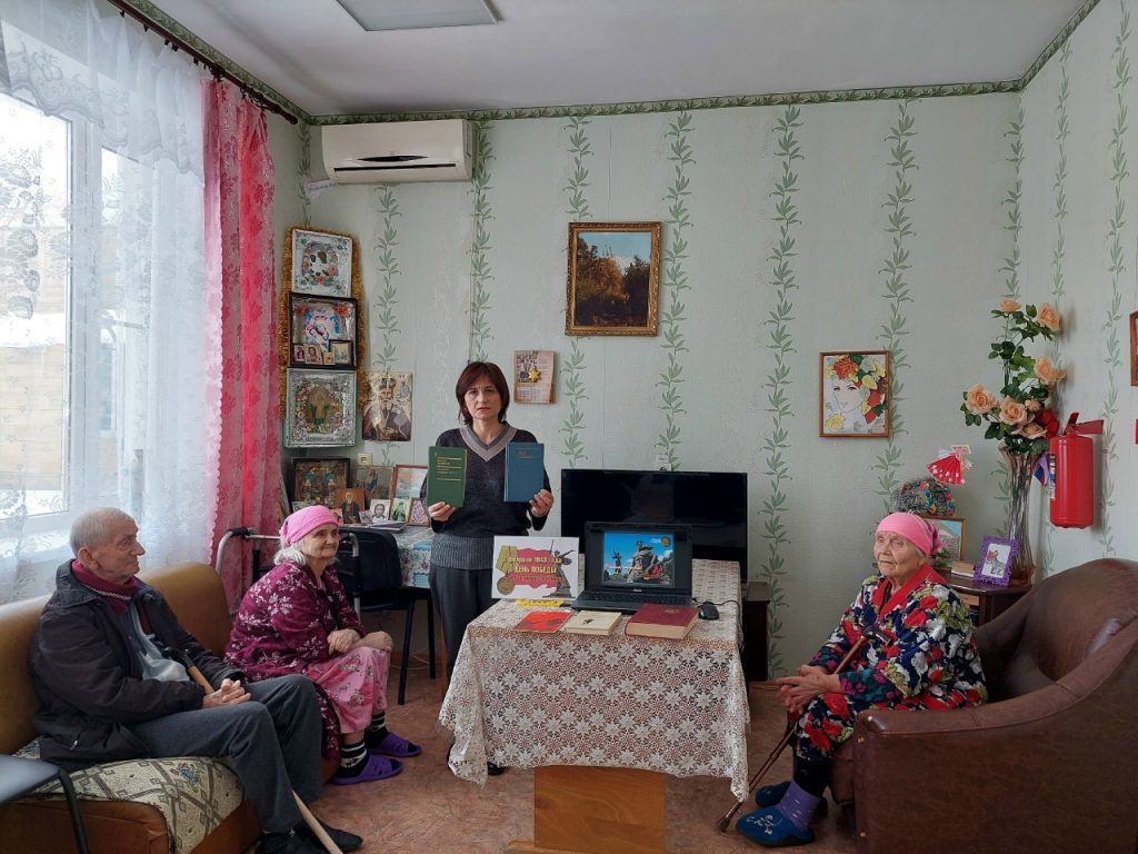 Библиотекарь Летницкого отдела для проживающих социально-реабилитационного отделения МБУ «ЦСО ГПВ и И» с. Летник провела беседу «Память о Сталинграде». Рассказала об исторических событиях Сталинградской битвы, о героизме и мужестве советских бойцов, о подвигах героев-защитников Сталинграда. С помощью презентации пожилые люди совершили виртуальную экскурсию по мемориальному комплексу «Героям Сталинградской битвы». Также был проведен обзор книжной выставки «Горячий снег Сталинграда», где были представлены книги о Великой Отечественной войне, в которых описываются события Сталинградской битвы. Культорганизатор социально-реабилитационного отделения Брусенская Е. И. и читательница библиотеки Ткаченко Э.В. прочли проникновенные стихотворения о Победе и памяти павших в Великой Отечественной войне.