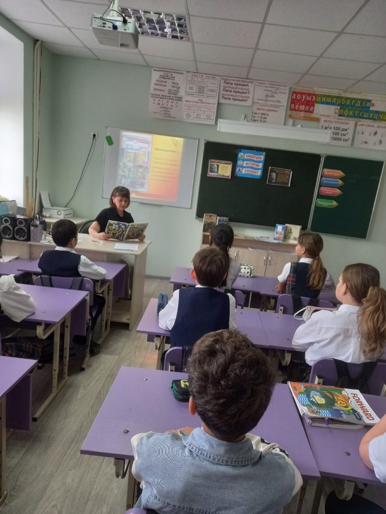 Библиотекарь Зареченского отдела провела литературные чтения, посвящённые творчеству Анатолия Митяева для обучающихся 5 класса МБОУ СОШ №39. С помощью презентации библиотекарь рассказала детям о жизни и творчестве писателя. Затем ребятами был прочитан рассказ писателя «Опасный суп», далее школьники обсудили рассказ и ответили на вопросы библиотекаря по прочитанному рассказу. Затем просмотрели фильм «Повар», который был создан по мотивам подвига повара Ивана Середы, удостоенного звания Героя Советского Союза с вручением ордена Ленина и медали «Золотая Звезда». Ребята пришли к выводу, что, сколько бы ни был велик и силён противник, победить его всегда поможет солдатская смекалка. Именно она помогла нашим героям – Никите Голову и Ивану Середе найти выход из самого безнадежного положения.