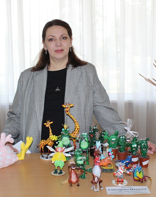 Наталья не только занимается организацией выставок мастеров, но и сама мастер. Ее работы можно лицезреть не только на праздниках, но и в витрине, которая расположена в фойе РДК…
