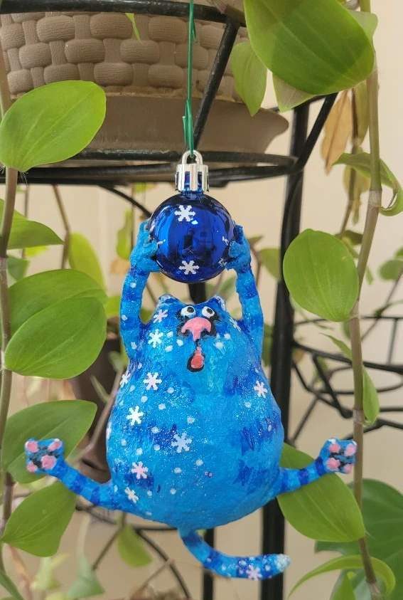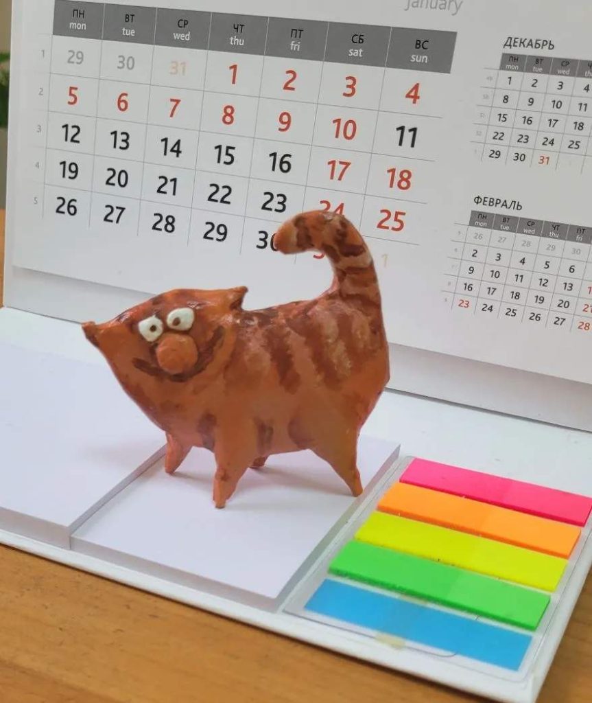 Кстати, два котика, сделанные руками Наташи, поселились в редакции… Один, подаренный к Дню печати, в этом году украсил нашу новогоднюю елку, а второй — толстый, с наглой рыжей мордой — ежедневно поднимает настроение каждому, кому он попадается на глаза…