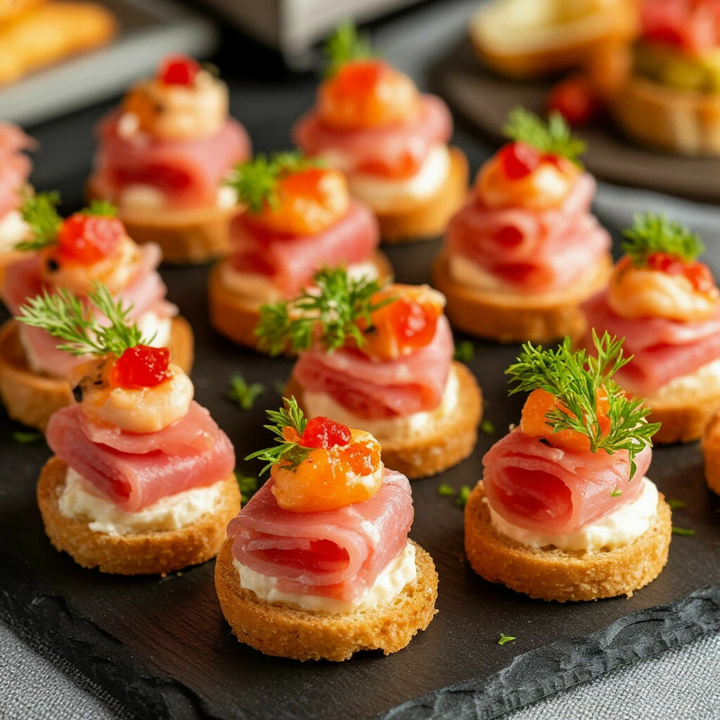 - Удобный формат: Нарезаем продукты так, чтобы их было легко взять руками или детскими столовыми приборами. Отлично подходят канапе, мини-бутерброды, кексы, тарталетки.