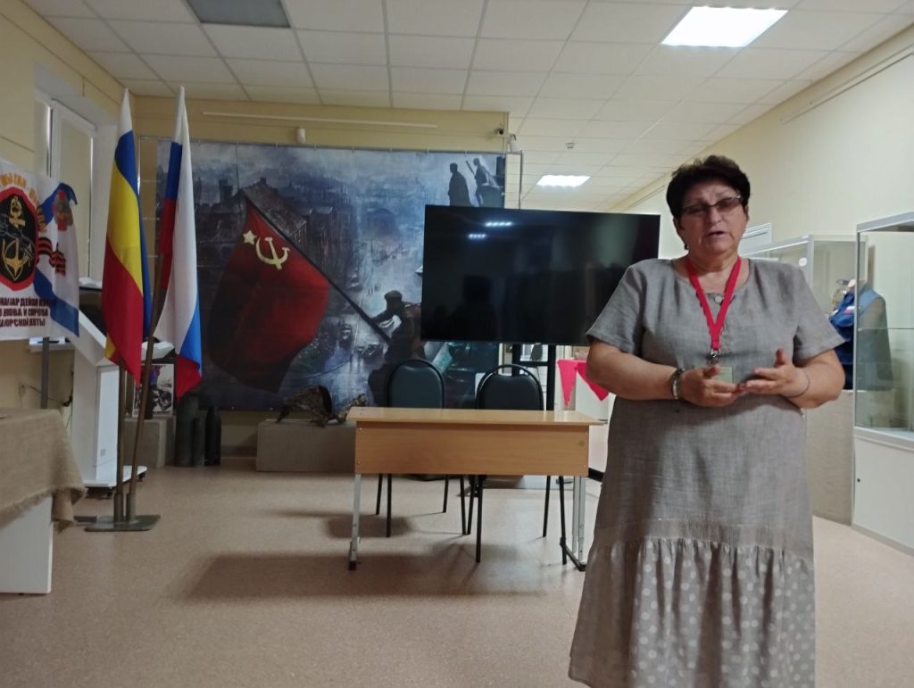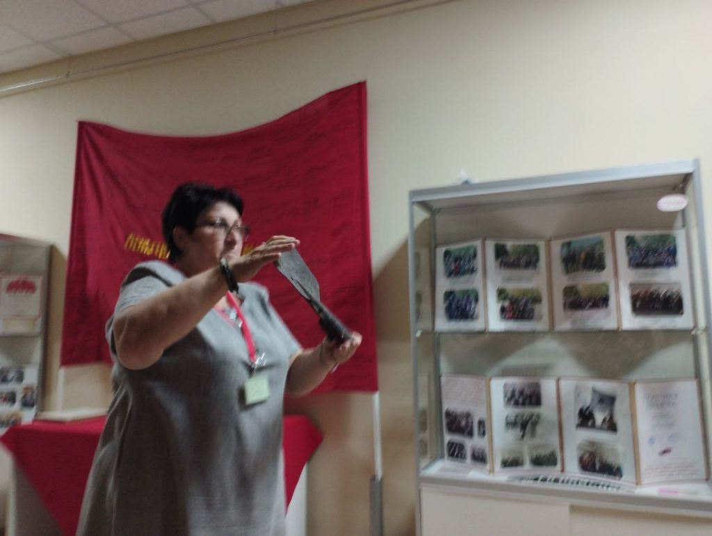 Директор музея Алла Ивановна Шеневская и краевед Ольга Алексеевна Овчинникова провели для гостей эмоциональный и содержательный рассказ о трагических событиях оккупации, длившейся с октября 1941 года по 30 августа 1943 года. Они подробно восстановили хронологию военных действий и поделились историями о мужестве земляков в этот тяжелый период.