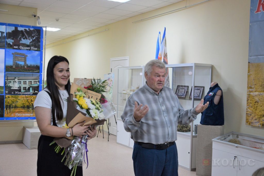 Начальник отдела культуры К. Лунева отметила, что в стенах обновленного музея это первая выставка, да еще и местного художника, который преподает, живет в нашем селе, рядом с нами, и пожелала вдохновения Марине на непростом творческом пути.