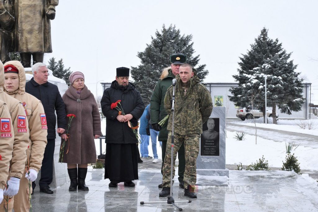К сожалению, после десятилетий мирной жизни тревожное время вновь ворвалось в судьбы наших семей. И сегодня, продолжая славную эстафету дедов и прадедов, с тем же самопожертвованием и отвагой на полях сражений противостоят возрожденной нацистской угрозе наши мужчины — сыновья, отцы, братья. Их мужество — прямое наследие подвига, свершенного здесь, на песчанокопской земле, 83 года назад.