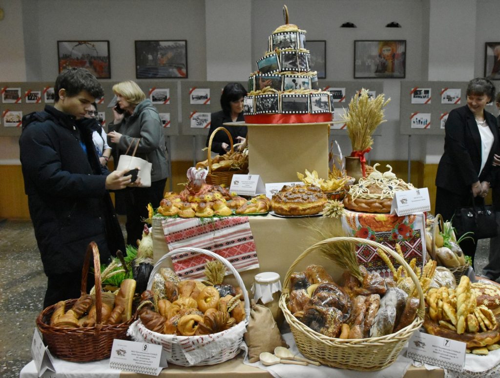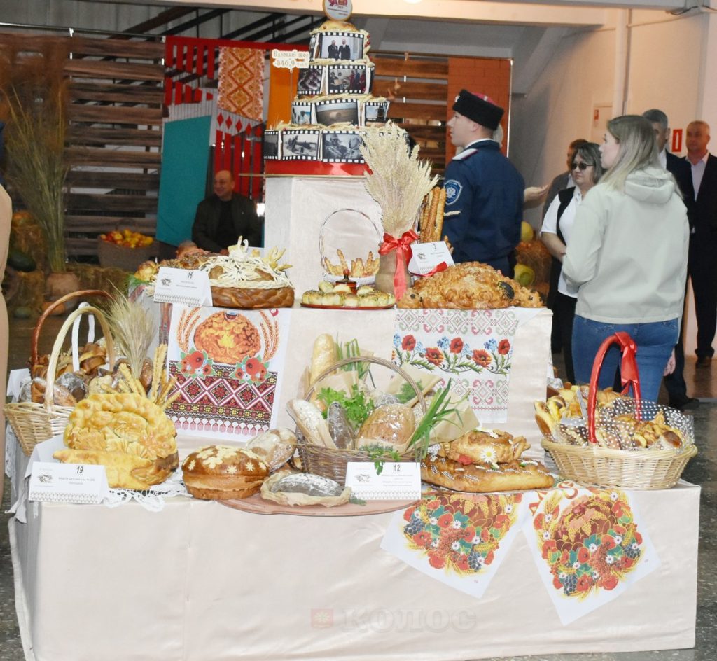 Еще до начала официальной церемонии в холле РДК царила особая творческая атмосфера. Гости могли полюбоваться на развернувшиеся выставки. Здесь и внушительные караваи, символизирующие богатство и гостеприимство земли песчанокопской, и изящные работы мастеров народных промыслов, и яркие картины воспитанников Детской школы искусств.