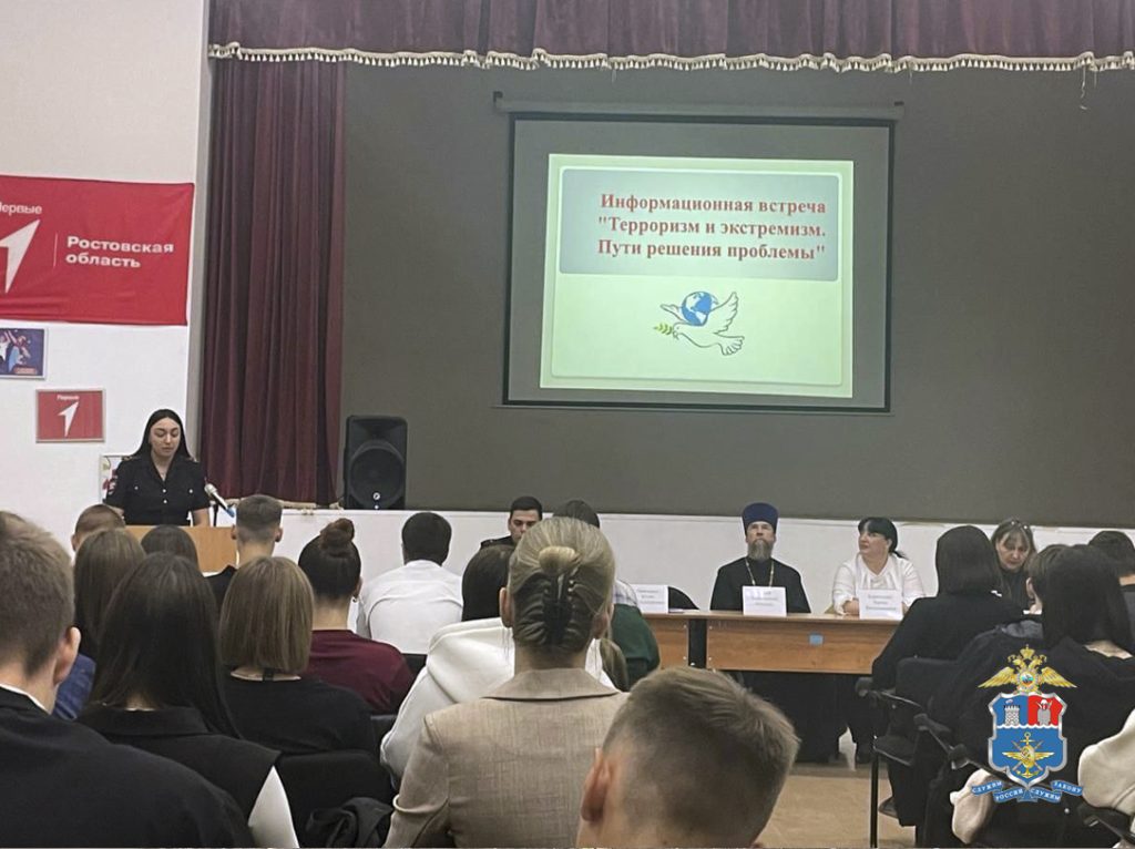 Более 150 студентов и активистов «Юных друзей полиции» собрались в Сальском индустриальном техникуме на встречу, посвящённую профилактике экстремизма и безопасному поведению в интернете.