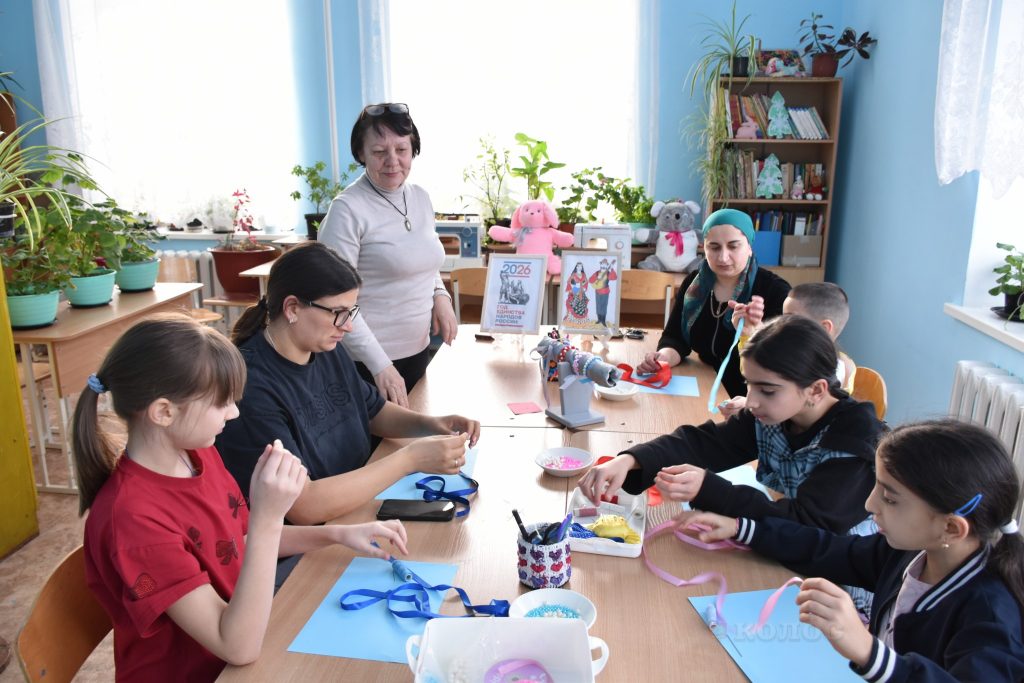 Педагог А.И. Панкратова познакомила семьи Федотовых и Спица с историей русского народного костюма. С педагогом О.А. Черненко семья Ступак занималась изготовлением оберега из фоамирана, который используется у чеченцев. Для семей Гасановых и Щербаковых педагог А.Г. Малхасян показала, как изготавливать брелоки в турецком стиле. С педагогом М.В. Проскуриной семьи Маминых и Труфановых занимались росписью керамики, рисовали гранат – фрукт, особо почитаемый в Армении. Семьи Игнатенко и Степанян под руководством педагога Г.А. Параваевой вышивали лентами символ белорусской культуры – березу. А с педагогом О.А. Стадниковой семьи Старовойтовых и Гасановых занимались созданием плетеного цыганского браслета.