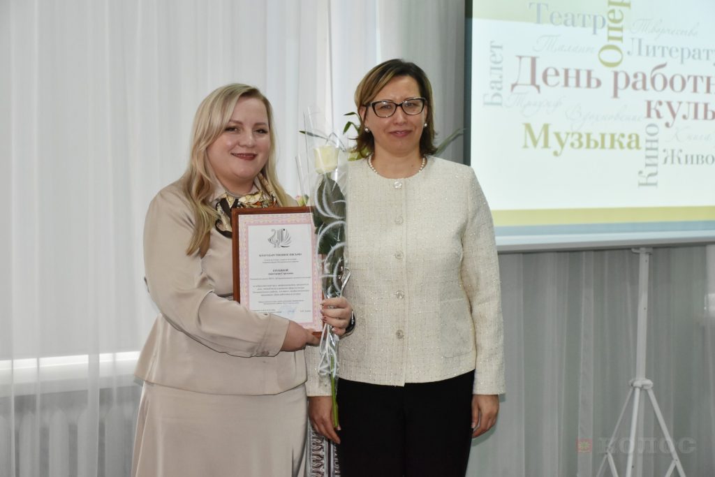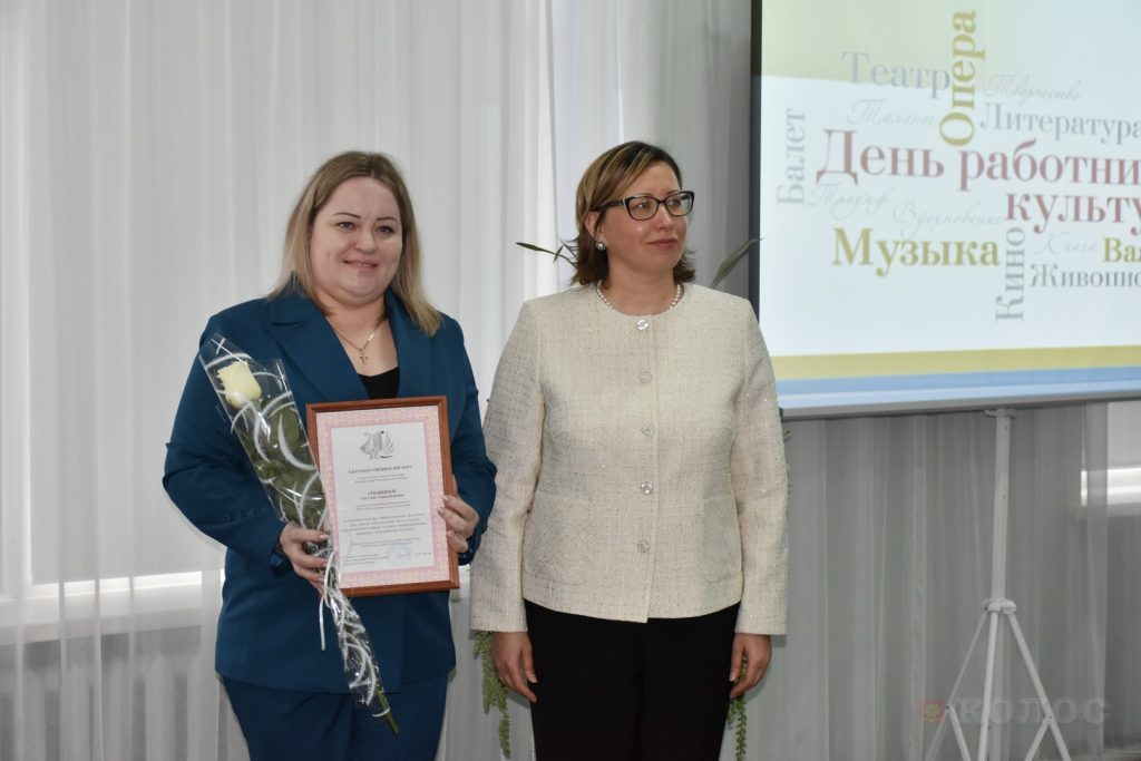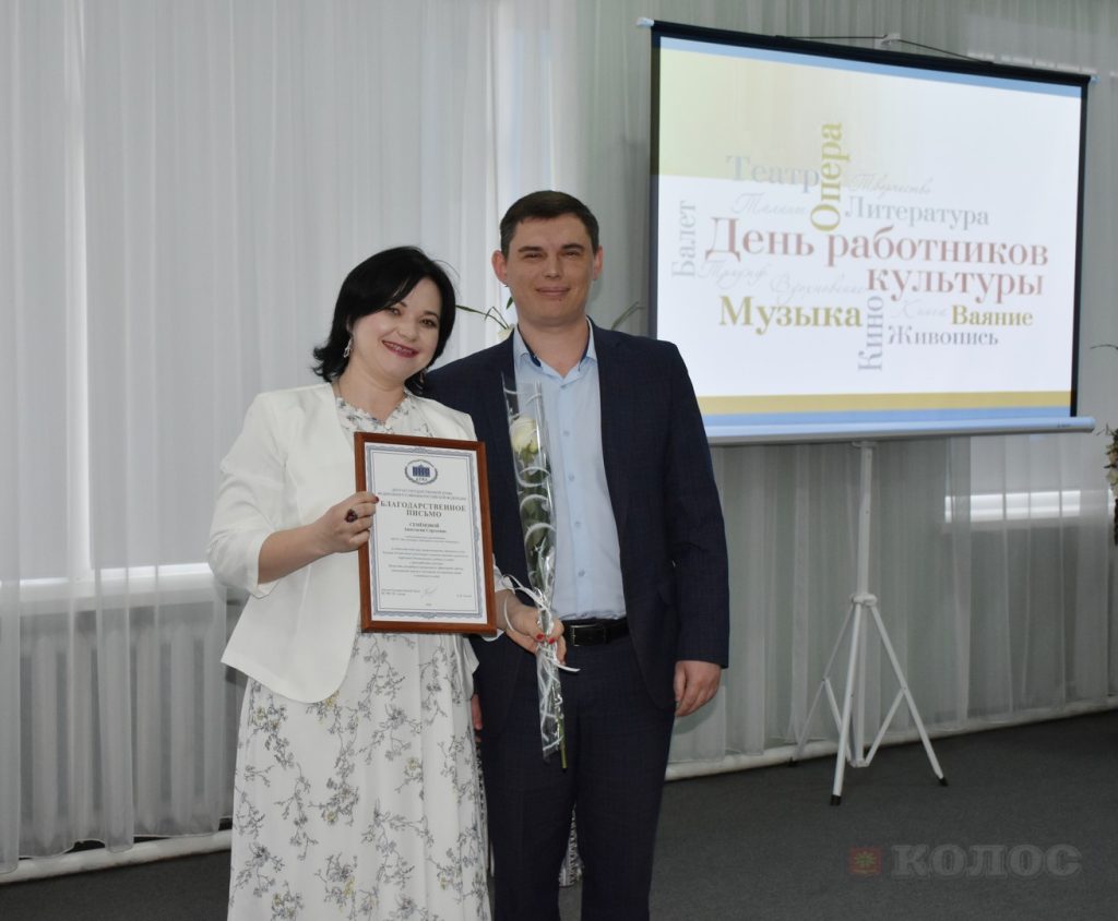Начальник отдела культуры, спорта и молодежи администрации Песчанокопского района К.В. Лунева также поздравила коллег и вручила Благодарственные письма за добросовестный труд, высокий профессионализм и личный вклад в развитие культуры района: