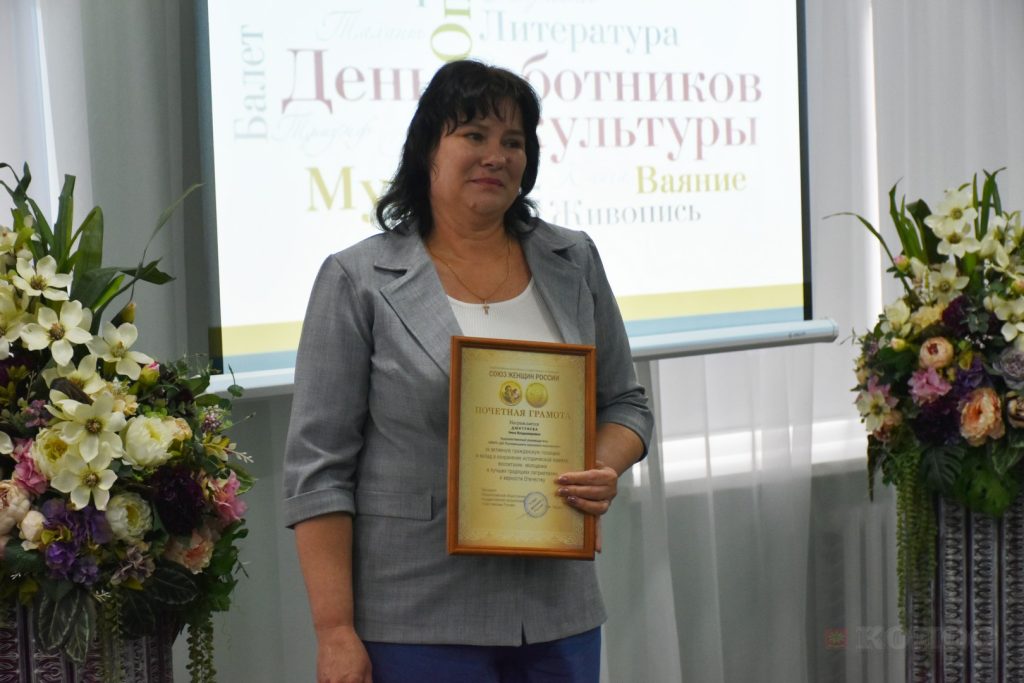 Культура всегда была и остается надежным крылом общественных организаций. Со словами поздравлений к виновникам торжества обратилась социальный партнер – начальник районного отдела ЗАГС, руководитель районного Совета Союза женщин России Елена Васильевна Теплова. Почетной грамотой Президента Общероссийской общественно-государственной организации «Союз женщин России» Екатерины Филипповны Лаховой за активную поддержку женского движения Песчанокопского района награждена Дмитриева Нина Владимировна — художественный руководитель Николаевского СДК МБУК «ДК Поливянского сельского поселения».