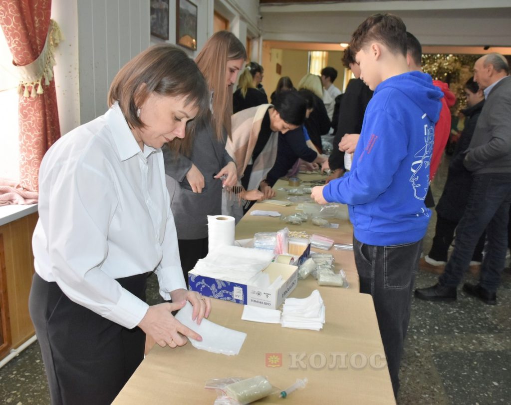 Все желающие могли подкрепиться солдатской кашей и горячим чаем, которыми угощали гостей сотрудники Песчанокопского сельского поселения.