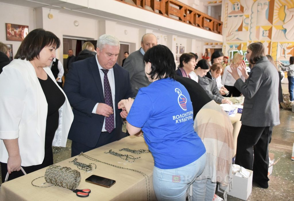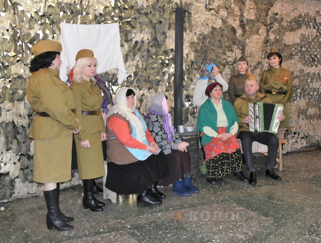 Перед началом концертной программы фойе Дворца культуры превратилось в интерактивную площадку. Здесь можно было услышать пронзительные песни военных лет, стать участником трогательной экскурсии по музейной выставке фотографий и документов «Освободители», а также увидеть работу лишь небольшой части огромной волонтерской семьи нашего района.
