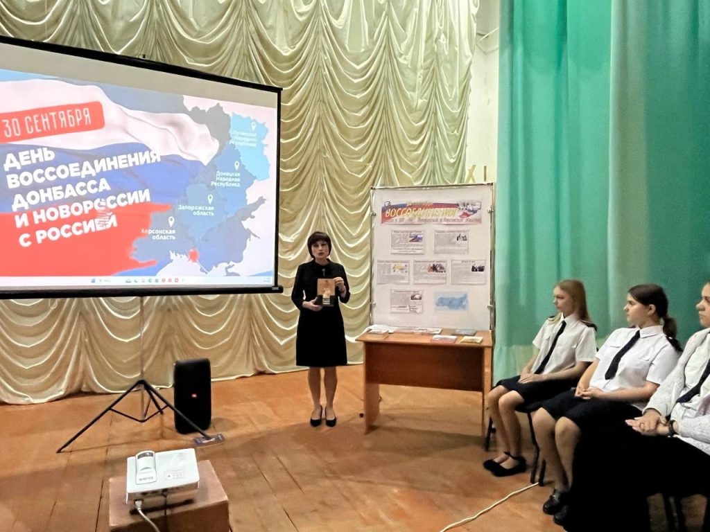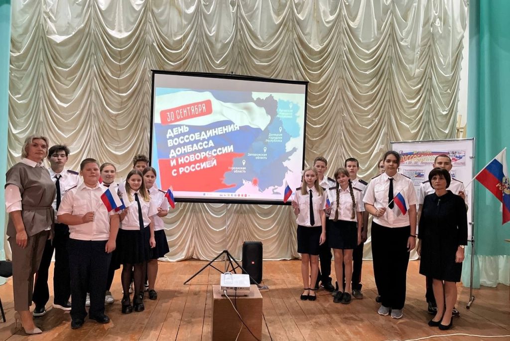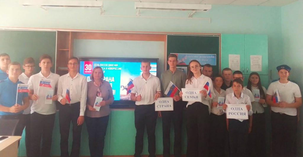 К этому знаменательному дню, Краснополянский отдел провёл патриотический час «Мы вместе» для обучающихся 8 — 11 классов МБОУ КСОШ №32. Библиотекарь с помощью видео \презентации «Одна история – одна судьба» рассказала присутствующим о событиях, которые прошли в данных регионах с 2014 по 2022 гг. О том, как боролись жители за свою независимость и какой ценой отстаивали и до сих пор отстаивают свою свободу. Ребята совершили краткий экскурс в историю и узнали о событиях, связанных с вхождением новых регионов в состав Российской Федерации.