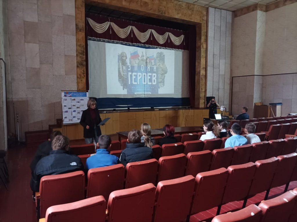 В рамках празднования библиотекарем Поливянского отдела совместно с работниками ДК организован показ Всероссийского видеожурнала «Эпоха Героев». Обучающиеся старших классов познакомились с героями нашего времени: военнослужащими, волонтерами, врачами, спасателями, и простыми жителями, которые проявляют мужество и героизм в современных условиях. Показ таких материалов вдохновляет и дает наглядные примеры истинного служения Родине.