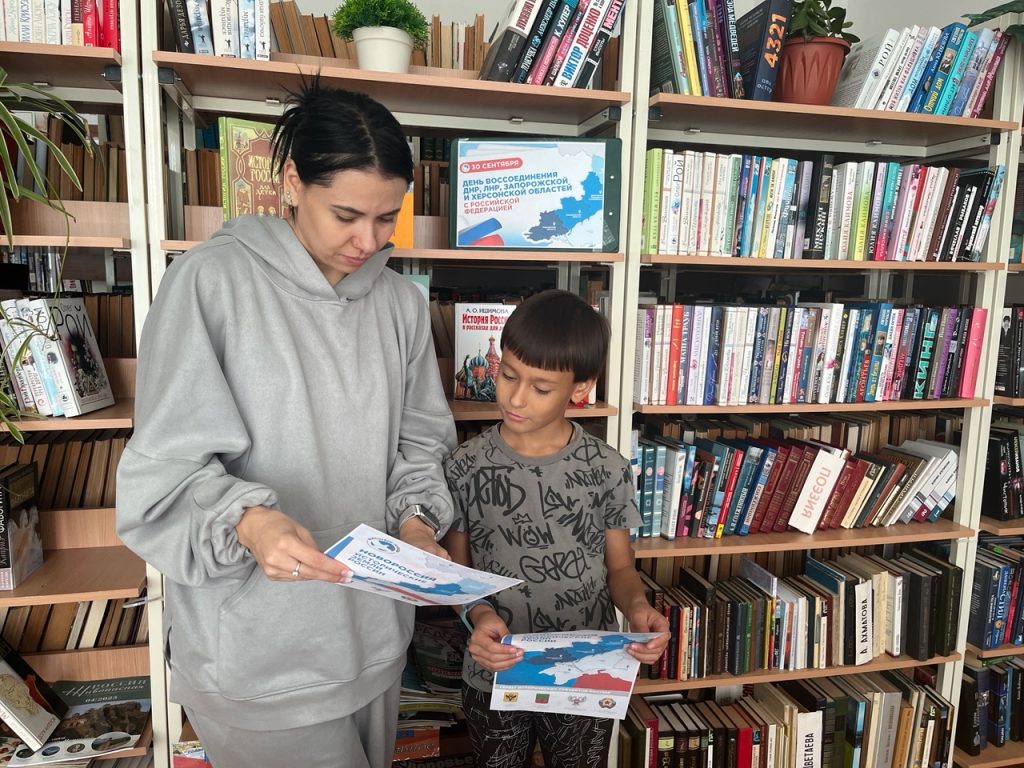 В завершение мероприятия библиотекарь раздала всем информационные буклеты «Мы Едины», рассказывающие о главных этапах истории регионов и о важнейших событиях воссоединения с Россией.