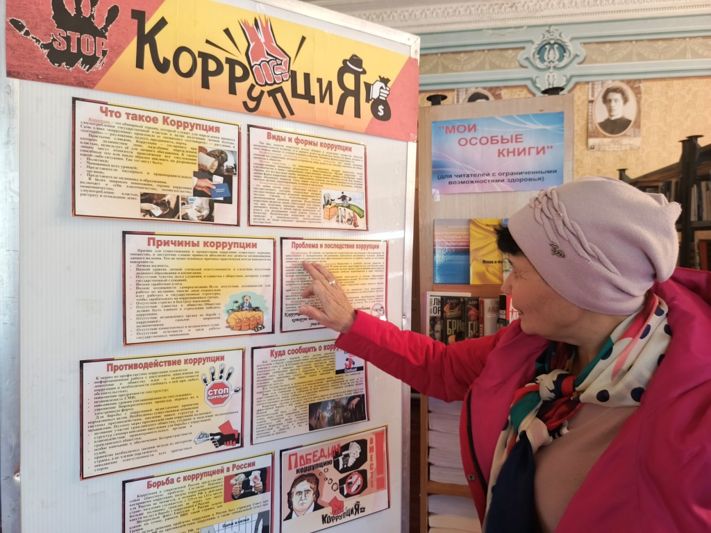 Библиотекарь Николаевского отдела провела акцию «Скажем коррупции НЕТ!» по раздаче памяток, которые не только информируют, но и мотивируют на соблюдение принципов честности и справедливости.