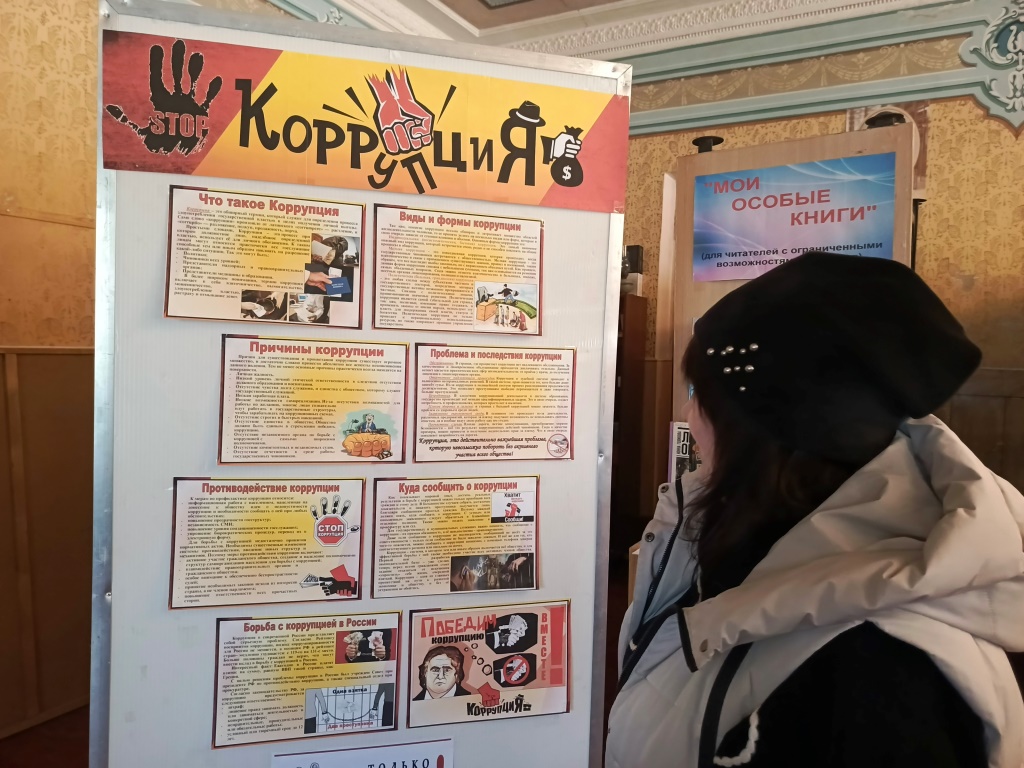 К мероприятию оформлялась книжная выставка «STOP, Коррупция», на которой была представлена правовая и художественная литература.