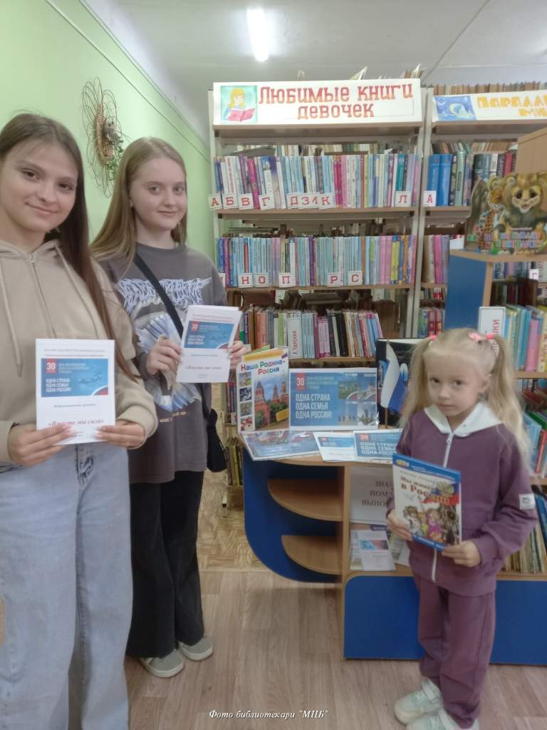 В ходе акции «Вместе мы сила» читателям детского отдела «МЦБ» вручались информационные буклеты, в которых рассказывалось о вхождении в состав России в 2022 году четырех южных регионов — Донецкой и Луганской народных республик, а также Херсонской и Запорожской областей, которые определили свой политический и гражданский статус, проголосовав за вхождение в состав нашей страны.