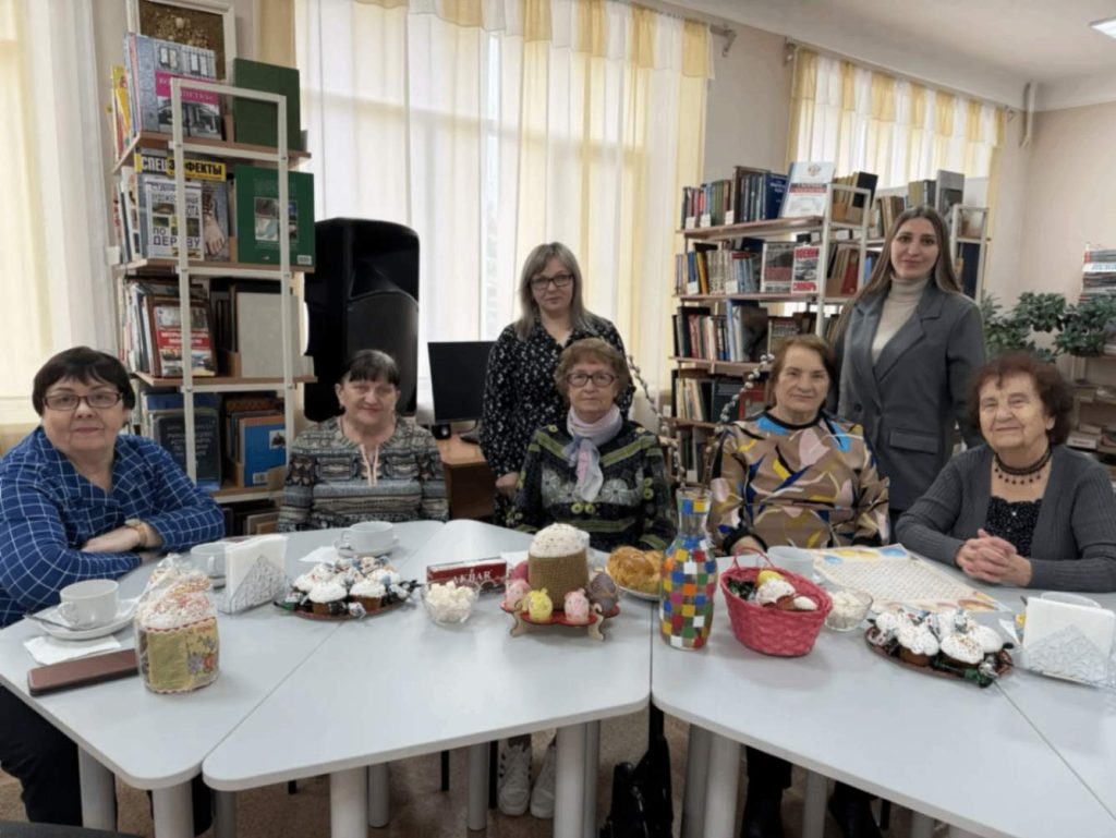Встреча получилась по‑настоящему душевной: гости погрузились в историю великого праздника, вспомнили вековые пасхальные традиции, с азартом отвечали на вопросы викторины, разгадывали филворд, ознакомились с тематическими материалами Президентской библиотеки. А затем всех ждало чаепитие: ароматные куличи, сладости и задушевные разговоры. Участницы клуба делились сокровенным — воспоминаниями о том, как встречали Пасху, рассказывали о семейных обычаях, передающихся из поколения в поколение, и обменивались любимыми рецептами праздничных угощений. Л.Г. Кравцова зачитала пасхальные истории-воспоминания из своего детства. Атмосфера тепла и взаимопонимания подарила всем участникам не просто хорошее настроение, а настоящее ощущение весны — обновления, радости и светлой надежды.