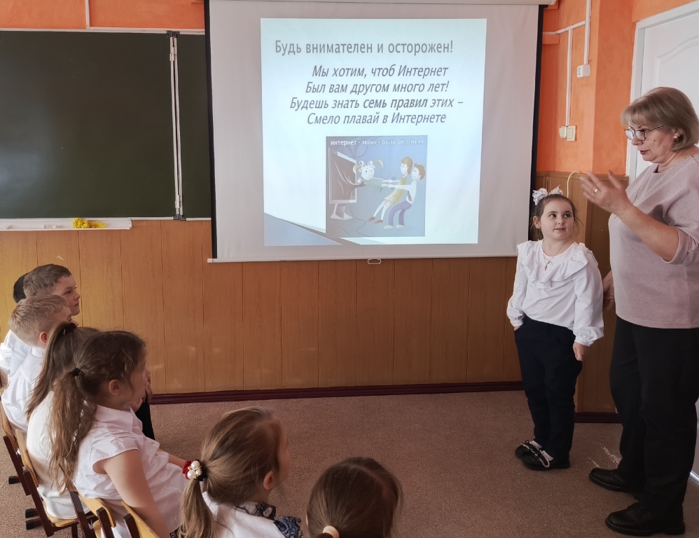 В Краснополянском отделе прошёл час предостережение «Осторожно! Всемирная сеть» для обучающихся 1 класса МБОУ КСОШ №32. С помощью видеопрезентации «Пусть будет добрым Интернет» библиотекарь познакомила детей с правилами поведения и общения в сети Интернет, рассказала о том, как избежать Интернет-опасностей, как не стать жертвой интернет-мошенников и что такое компьютерный вирус. Ребята отгадывали загадки, участвовали в викторине «Сказка ложь, да в ней намёк», в котором им предстояло сформулировать основные правила безопасного Интернета, используя героев сказок («Красная Шапочка», «Волк и семеро козлят», «Золотой ключик или Приключения Буратино»).