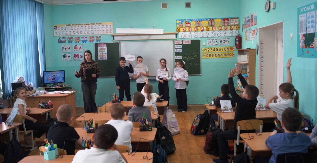 Затем школьникам был показан мультфильм «Смешарики. Азбука интернета».