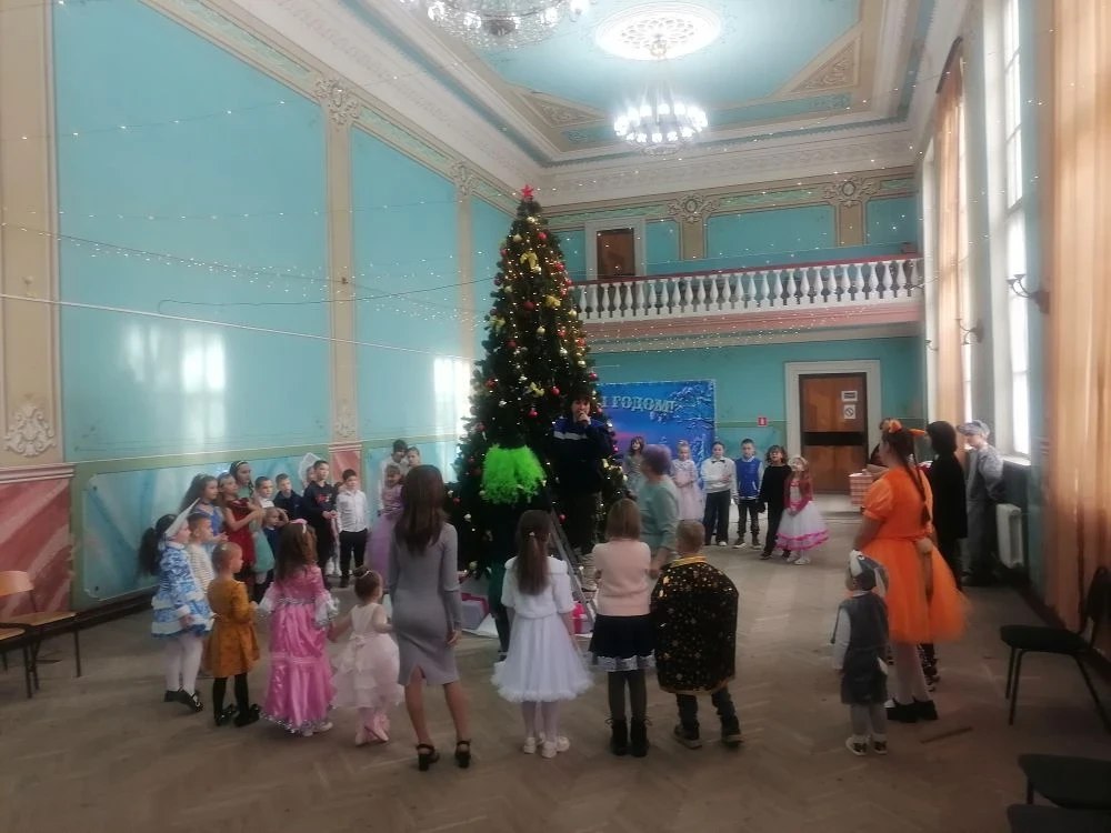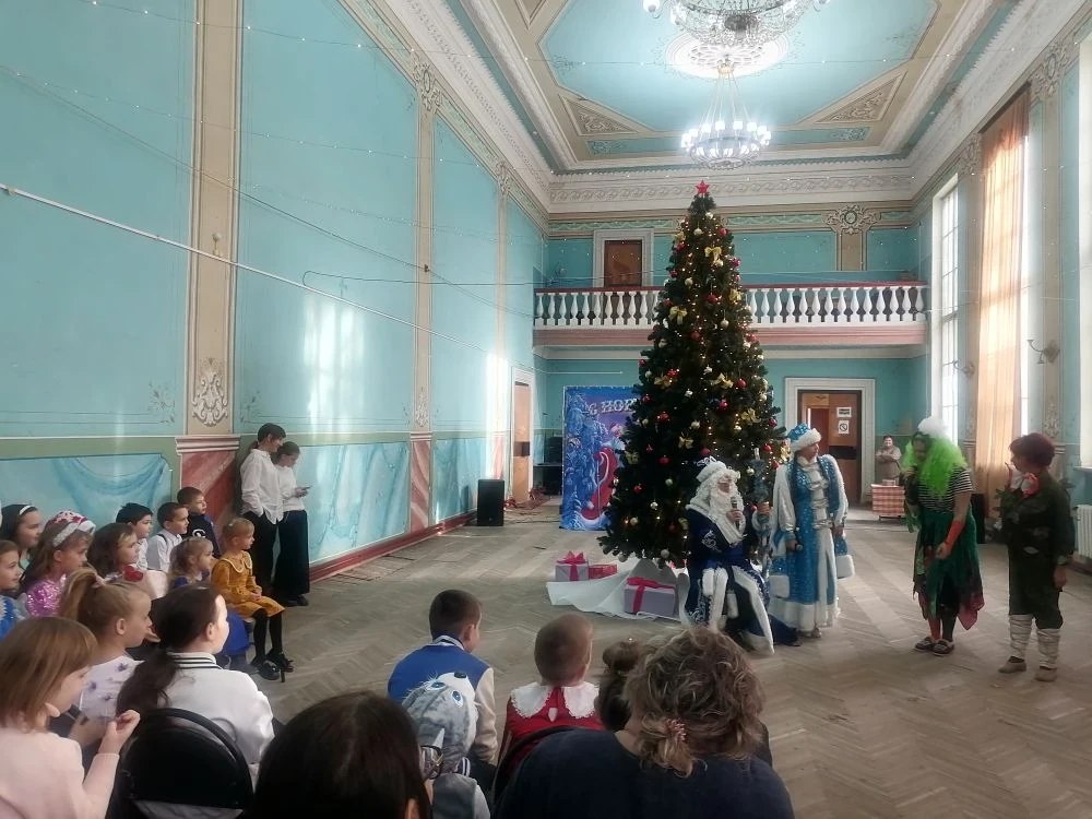 Работники Дома культуры подготовили для гостей яркое театрализованное представление. Вместе с Дедом Морозом и Снегурочкой в сказку детей вовлекли любимые персонажи: озорные Кикимора и Леший, хитрая Лиса и добрый Волк. Ребята не просто смотрели спектакль, а стали его полноправными участниками: водили хороводы вокруг нарядной елки, читали стихи, пели новогодние песни и от души веселились.