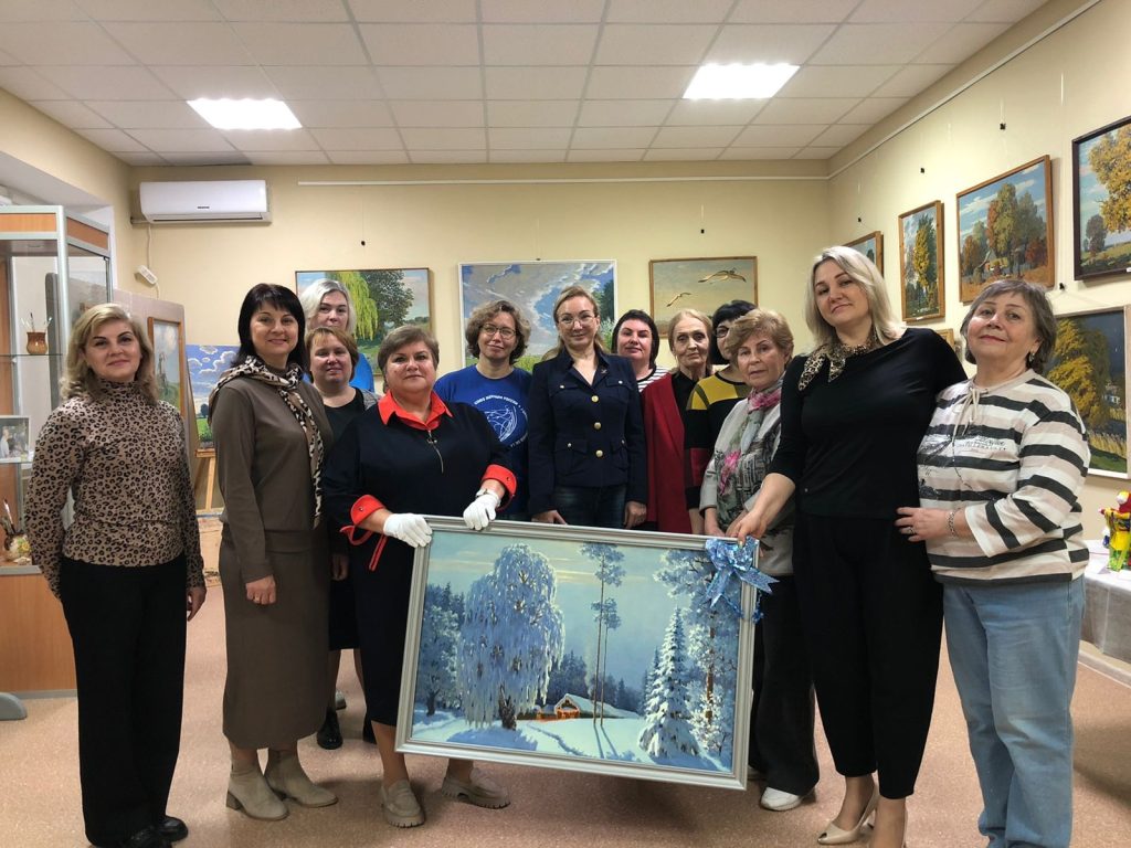 Гости также оценили выставку работ местной художницы и мастера прикладного искусства Марины Проскуриной. Коллекция картин Александра Прохорова пополнилась одним полотном, переданным в дар семьей Тепловых.
