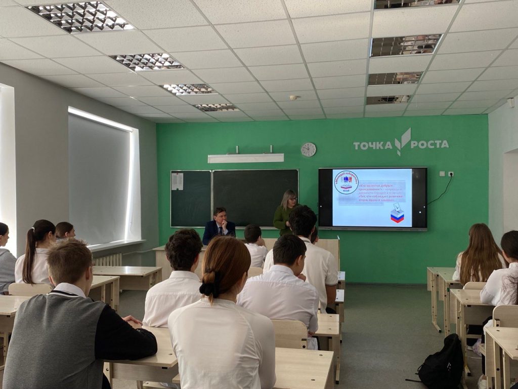 В рамках месячника Молодого избирателя учащиеся 8–11 классов Песчанокопской СОШ №2 встретились с председателем территориальной избирательной комиссии района Эдуардом Николаевичем Бабиным.