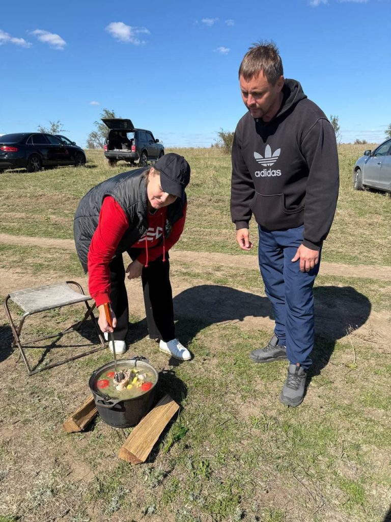 В 11:00 на берегу развернулось главное действие — соревнование по приготовлению ухи. В кулинарном поединке приняли участие пять команд: «Россети Юг 1», «Россети Юг 2», МУП КХ Песчанокопского района, «Бюджетники» и администрация сельского поселения.